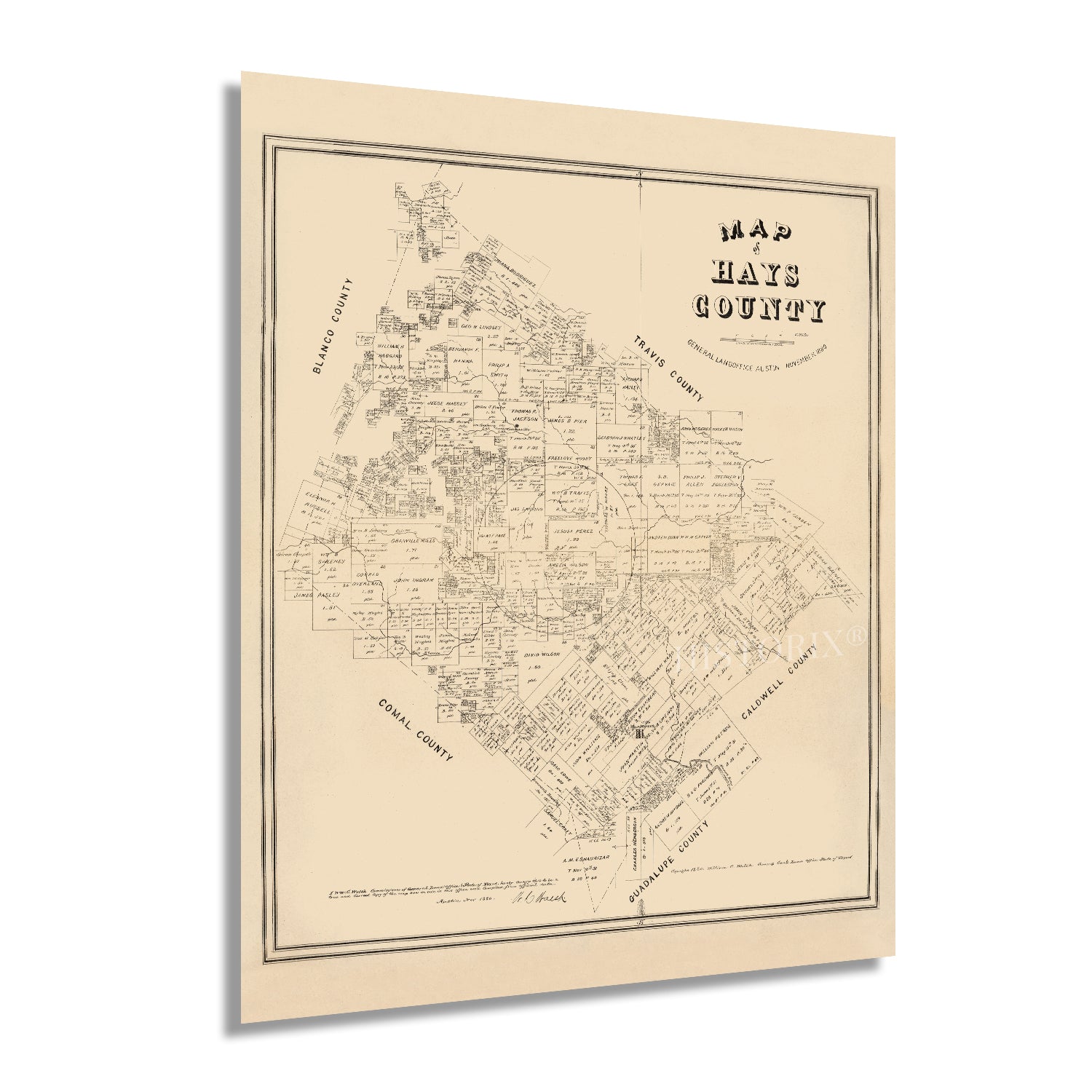 1880 Map of Hays County Texas United States Wall Art Print